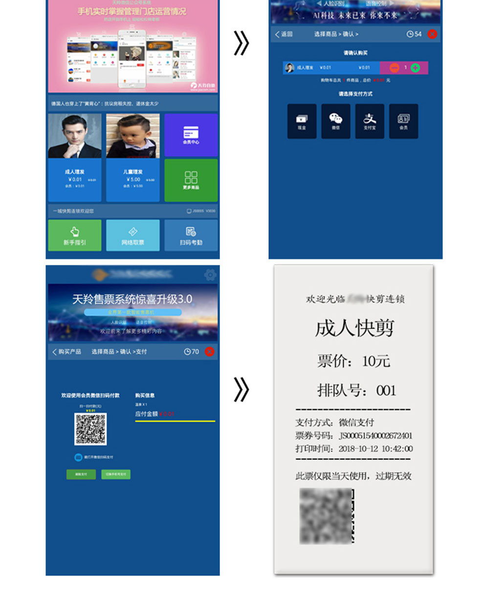 應用場所:快剪店,電影院,休閑娛樂場所,景區等