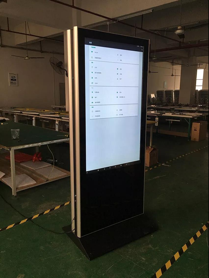 55寸定制款前后雙屏立式廣告機,因結構獨特,通常放在人流量大的路口,以便于為雙向行人提供信息宣傳或導航用。