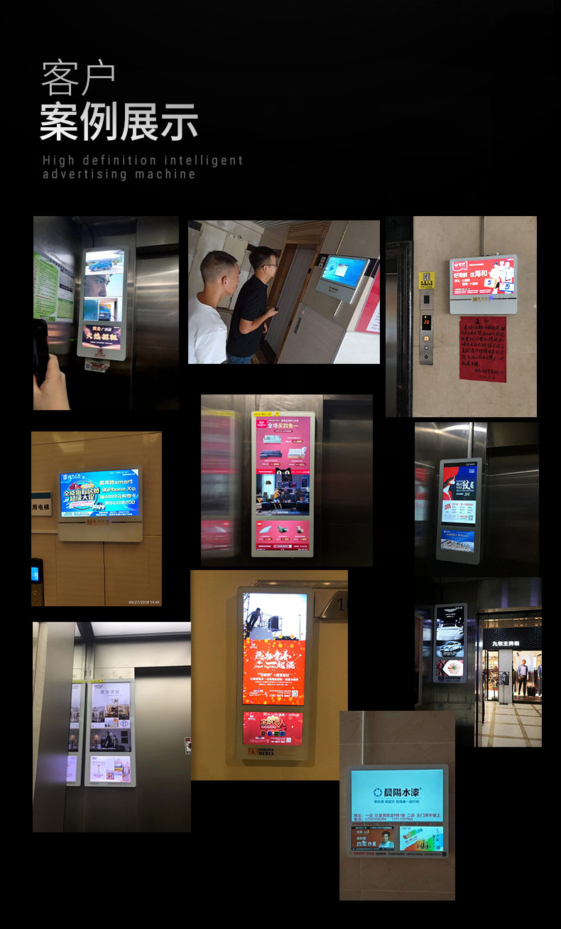 樓宇廣告機作為當下火熱的新媒體可以運用視頻、聲音、圖片等多媒體技術以色彩、動態展示和美妙的聲音吸引人們的注意力,達到廣告營銷的目的,因而被廣泛應用于廣告宣傳中。首先,樓宇廣告機針對的目標比較明確,主要集中于中高端消費群體,他們對品牌的認知度高且具備較高的消費能力,我們只要通過設備進行客流數據采集和分析了解到他們的消費傾向以及興趣愛好、所屬行業等屬性就能實現廣告精準投放。